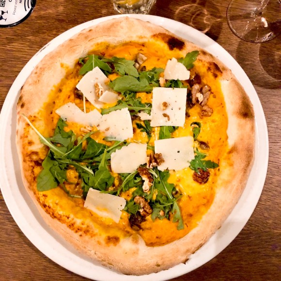 On a aimé le plaisir floral du Spritz Saint-Germain avec une paille en bucatini ; la pizza de saison courge, noix, châtaigne, roquette, copeaux de parmesan ; la pizza Buratta d’Amore (tomates jaunes, datterini, pesto, tomates rouges confites, burrata, amandes grillées) et le principe du menu enfant (tous les plats sont disponibles en demi-portion et moitié prix du plat à la carte).