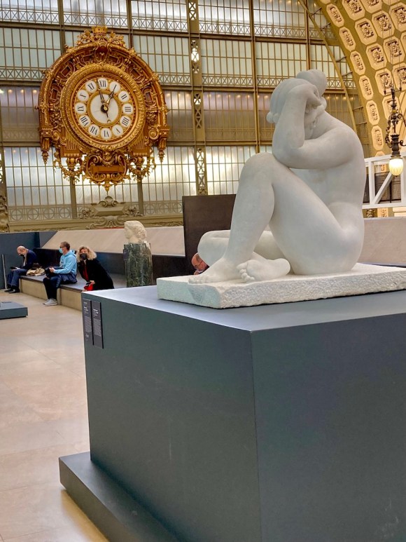 Au premier étage, avant d’entrer dans les salles consacrées aux artistes impressionnistes, les visiteurs s’activent devant le cadran en verre de l’horloge monumentale, avec la perspective des toits de Paris et le Sacré Cœur en toile de fond. Cette scène est comme un sas de décompression avant de vivre un grand moment.