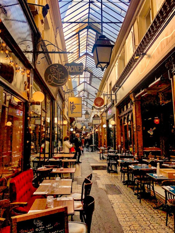 Construits au XIXe siècle dans le quartier des grands boulevards et de la Bourse, les passages couverts conservent le cachet du Paris d’un autre temps. On passe successivement de l’un à l’autre : le Passage Verdeau (construit en 1847) avec ses antiquaires et ses vieilles échoppes. Le Passage Jouffroy (1836) se distingue par ses dalles en marbre et sa verrière en ogive. Il abrite notamment le Musée Grévin. Le Passage des Panoramas (1799) est considéré comme le premier passage couvert de Paris. Nous nous prenons au jeu de composer le menu de notre repas idéal à partir des différentes suggestions sur les ardoises accrochées à la devanture les restaurants.