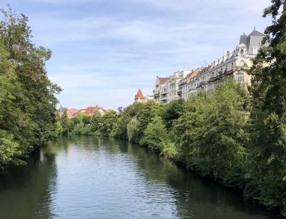 Depuis la place Brant en direction des Institutions européennes, promenez-vous à la vitesse du courant sur un chemin arboré agréable, au bord de l’eau.