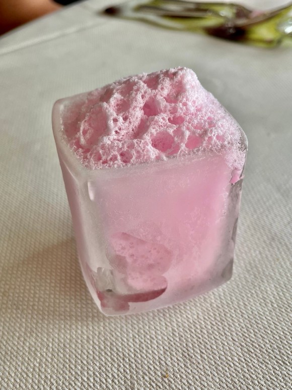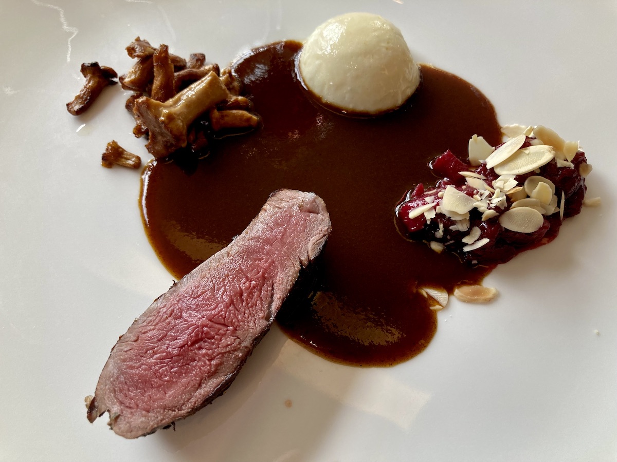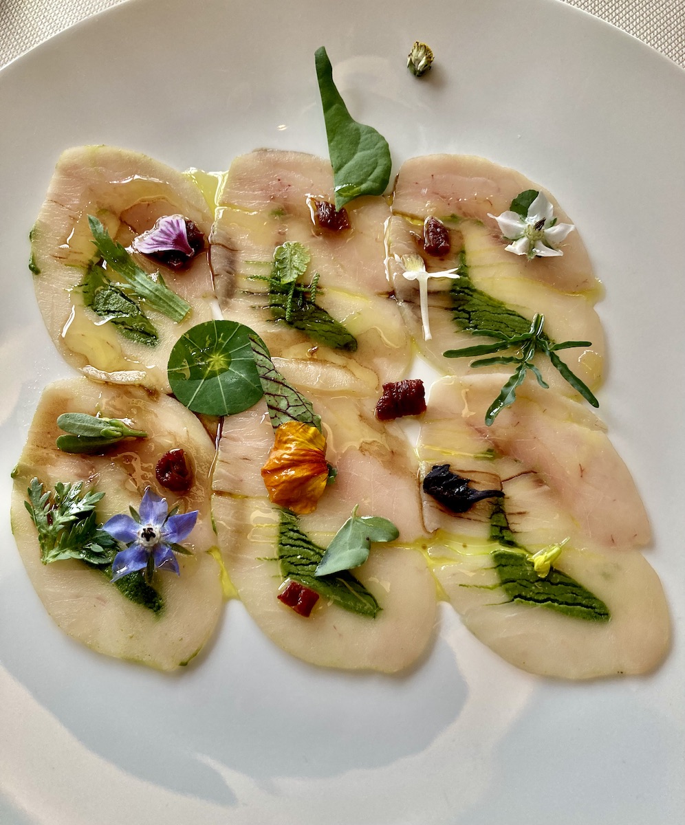 On a aimé l’accueil souriant par le chef et son enthousiasme à partager sa passion avec les convives ; les dressages graphiques et appétissants des assiettes ; l’identité culinaire, le parti-pris pour la naturalité et les herbes sauvages qui apportent une réelle valeur ajoutée à chaque plat. L’association insolite et équilibrée du carpaccio d’espadon, des fleurs et herbes sauvages ; la cuisson parfaite du gigot de chevreuil et au dessert, la fraîcheur pétillante du sorbet mojito.