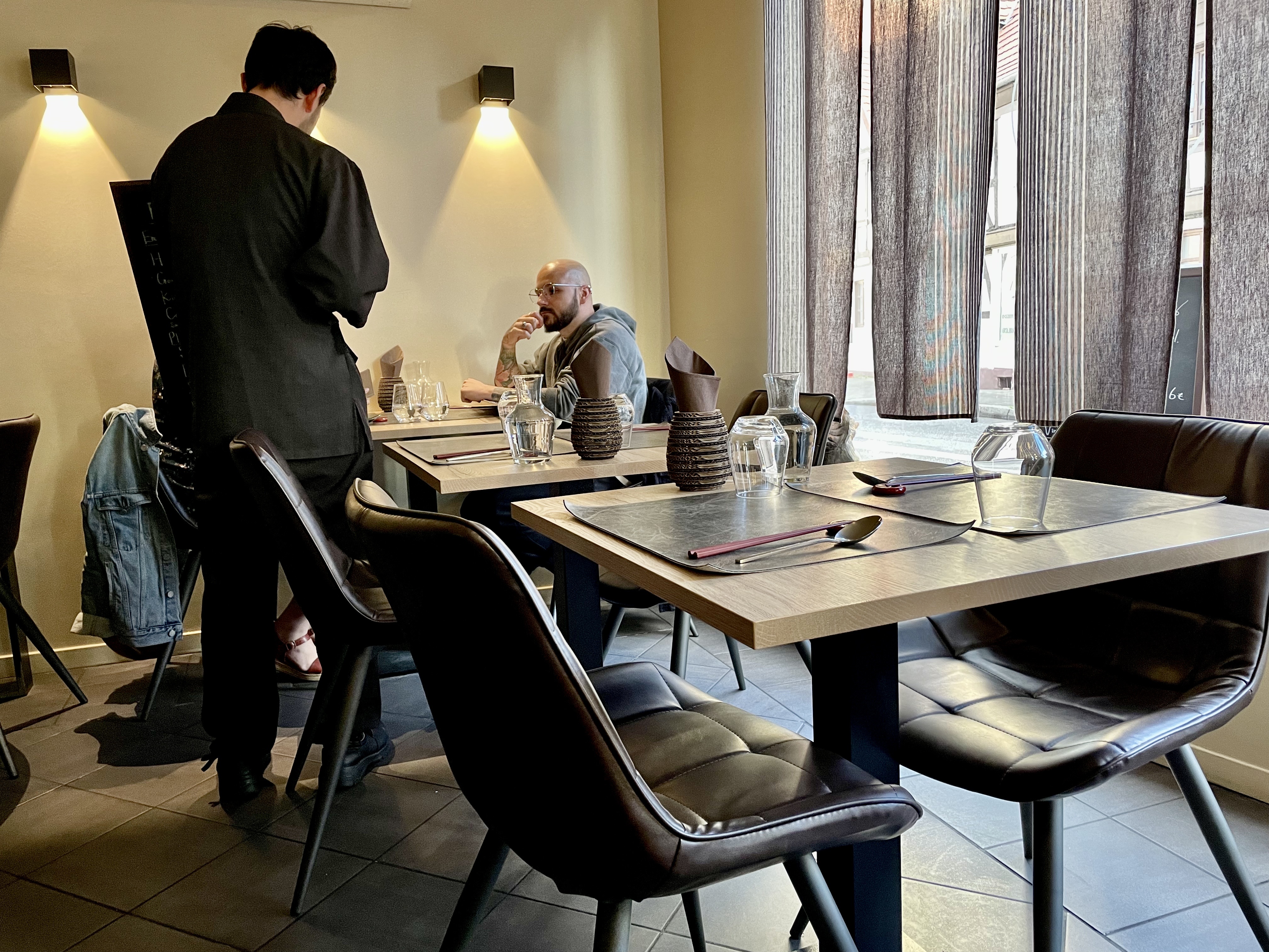 La décoration de la salle est sobre mais apaisante. L’accueil et le service en salle sont attentifs et les subtilités de chaque plat nous sont expliquées soigneusement.