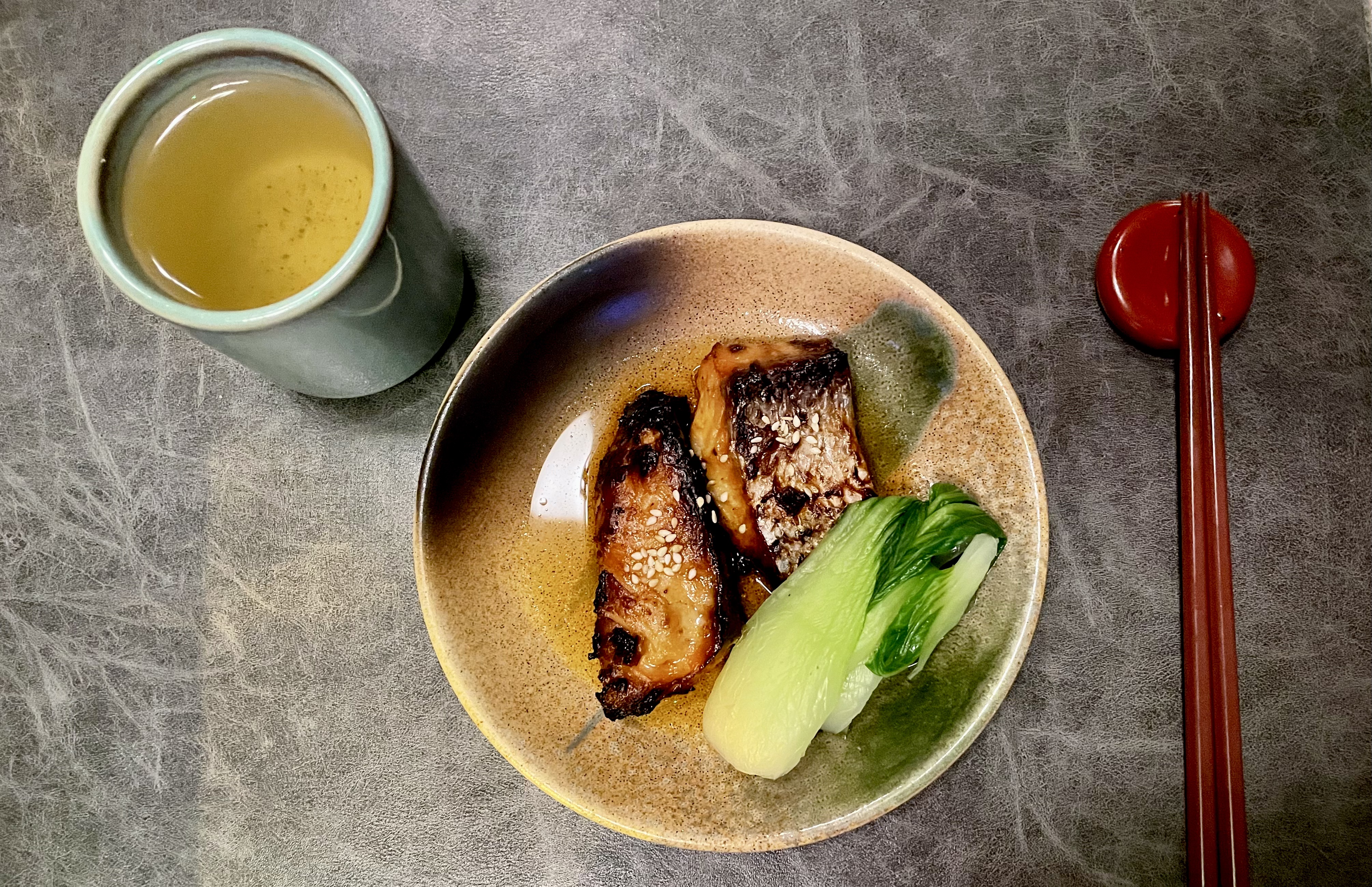 On a aimé ce voyage culinaire au Japon, l’ambiance d’izakaya transposé en France, la vaisselle de table élégante. La douceur du velouté froid d’aubergine et umeboshi (prune salée) aux saveurs dépaysantes ; l’aburi sushi saumon, saumon snacké au chalumeau ; le genmaicha, thé vert japonais au riz soufflé ; la soupe miso enveloppante, l’une des meilleures que nous ayons mangées en Europe ; et la glace au sésame noir.