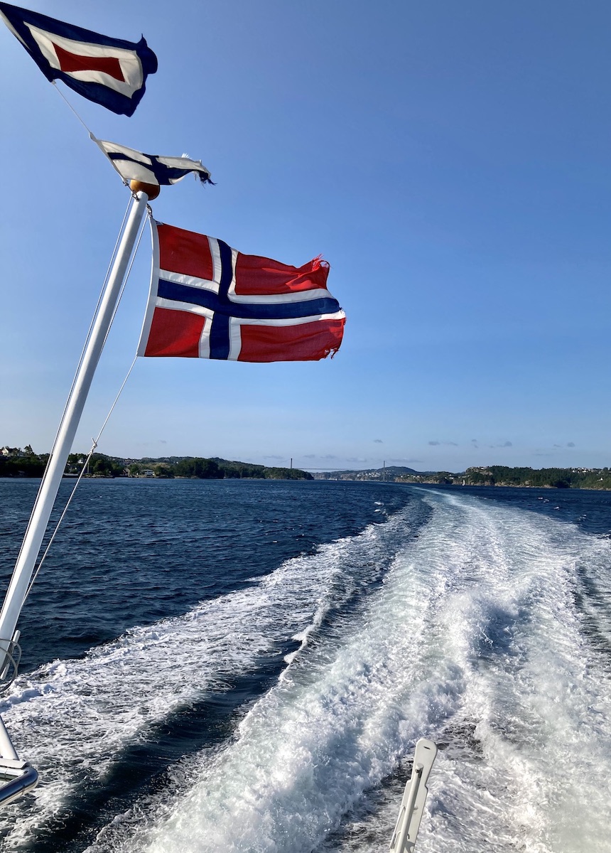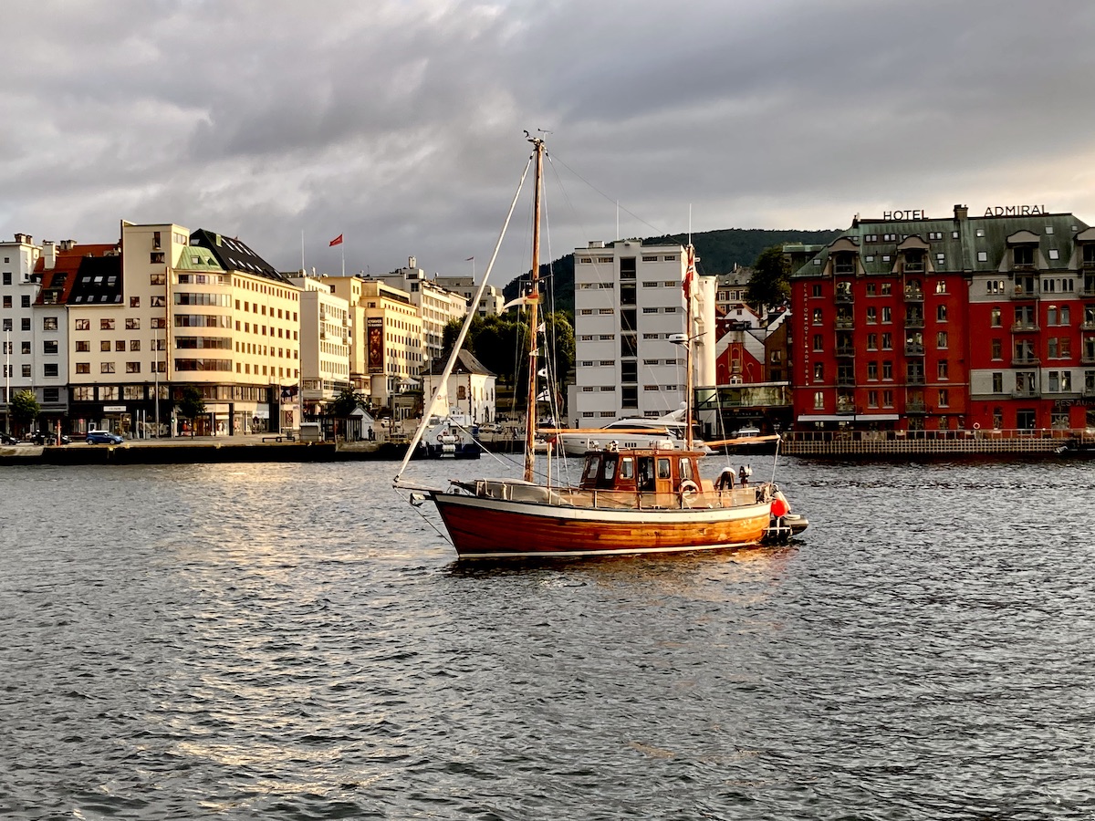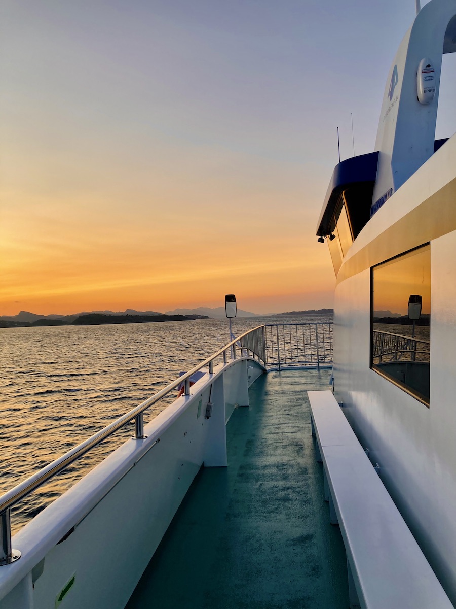 Après un tour (libre) de la marina après le dîner, le bateau repart vers Bergen, au coucher du soleil.