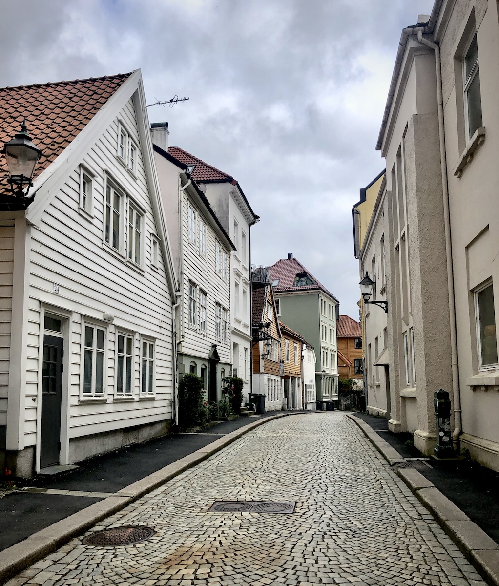 Flâner au hasard des ruelles pavées (près du départ du funiculaire de Fløyen) offre une échappée au calme, à l’écart des sites touristiques. Cet ensemble de maisonnettes coquettes – souvent blanches, décorées de fleurs et ornées d’un drapeau norvégien – créent une atmosphère paisible.