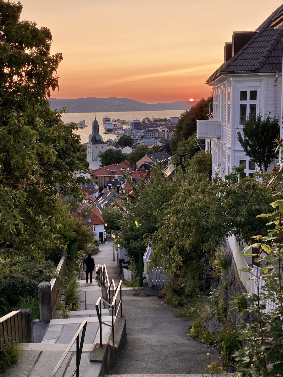 Elle doit son deuxième surnom – « ville aux 7 collines » – aux 7 collines qui l’entourent, dont Fløyen connue pour son funiculaire et la vue panoramique sur la ville.