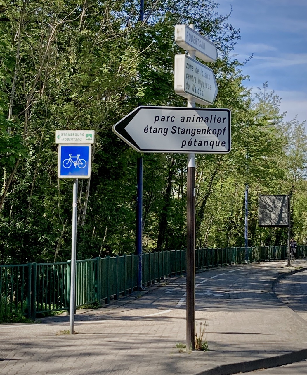 Si vous voulez prolonger la promenade : au croisement avec l’entrée du parc animalier, continuez tout droit pour une balade sur la digue à travers champs. De là, vous pouvez rejoindre la forêt de la Robertsau et le parc de Pourtalès.