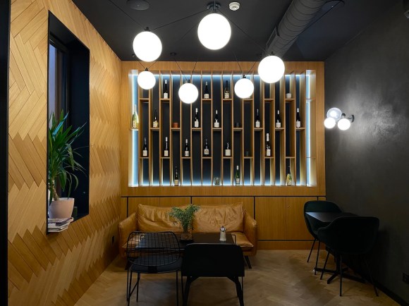 Les espaces de vie au rez-de-chaussée sont baignés par la lumière de grandes baies vitrées. Les luminaires tout en rondeur et la verdure grimpante créent une ambiance contemporaine agréable. On s’installe un moment au calme dans la bibliothèque. On prend un verre au bar (œnothèque bio) ou dans le patio aux beaux jours.