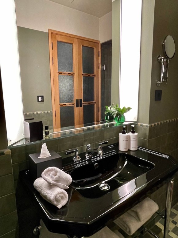• Les produits de soin Byredo et la douche ciel de pluie dans la salle de bain