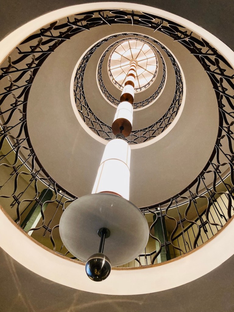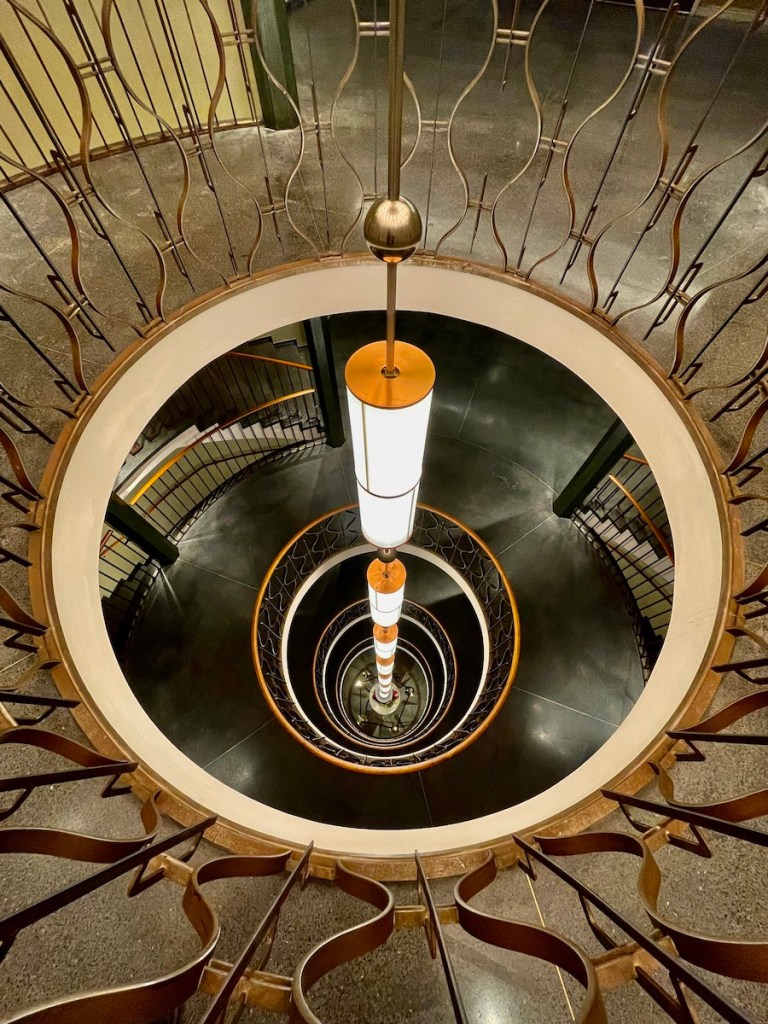 • L’escalier monumental et le luminaire qui se déploie sur 6 étages
