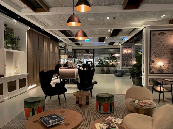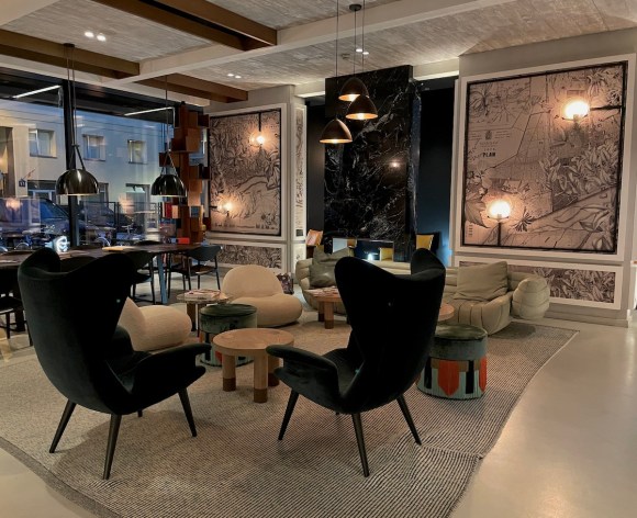 Le bâtiment moderne et géométrique de 7 étages a été conçu par JEMS Architekci. L’intérieur a été imaginé avec le studio londonien De Salles Flint. Les designers ont misé sur un décor chaleureux et raffiné : harmonie de couleurs apaisantes, matériaux de qualité (bois, laiton, velours, marbre), plantes délicates, canapés et fauteuils confortables, mobilier d’icônes du design européen, cartes stylisées de Varsovie au XIXe siècle et œuvres d’art interagissent en symbiose.