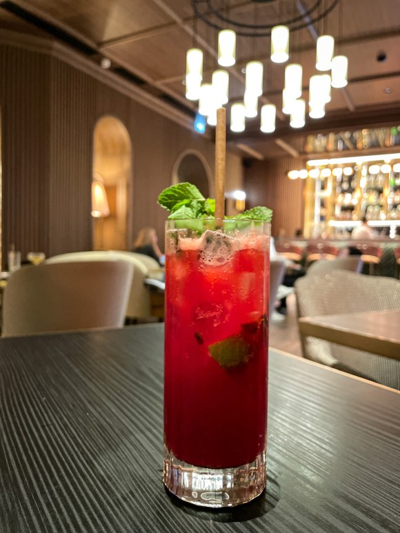 Le bar décline une sélection de vins d’exception et des cocktails création, élaborés par le mixologue maison. Mentions spéciales pour le côté tarte passion meringuée du « 1387 Pornstar » (vodka, purée de passion, sirop de vanille, blanc d’œuf meringué et crémant) et la fraîcheur fruitée du « Sweet Raspberry » (sans alcool, purée de framboise, menthe, citron vert et ginger beer).