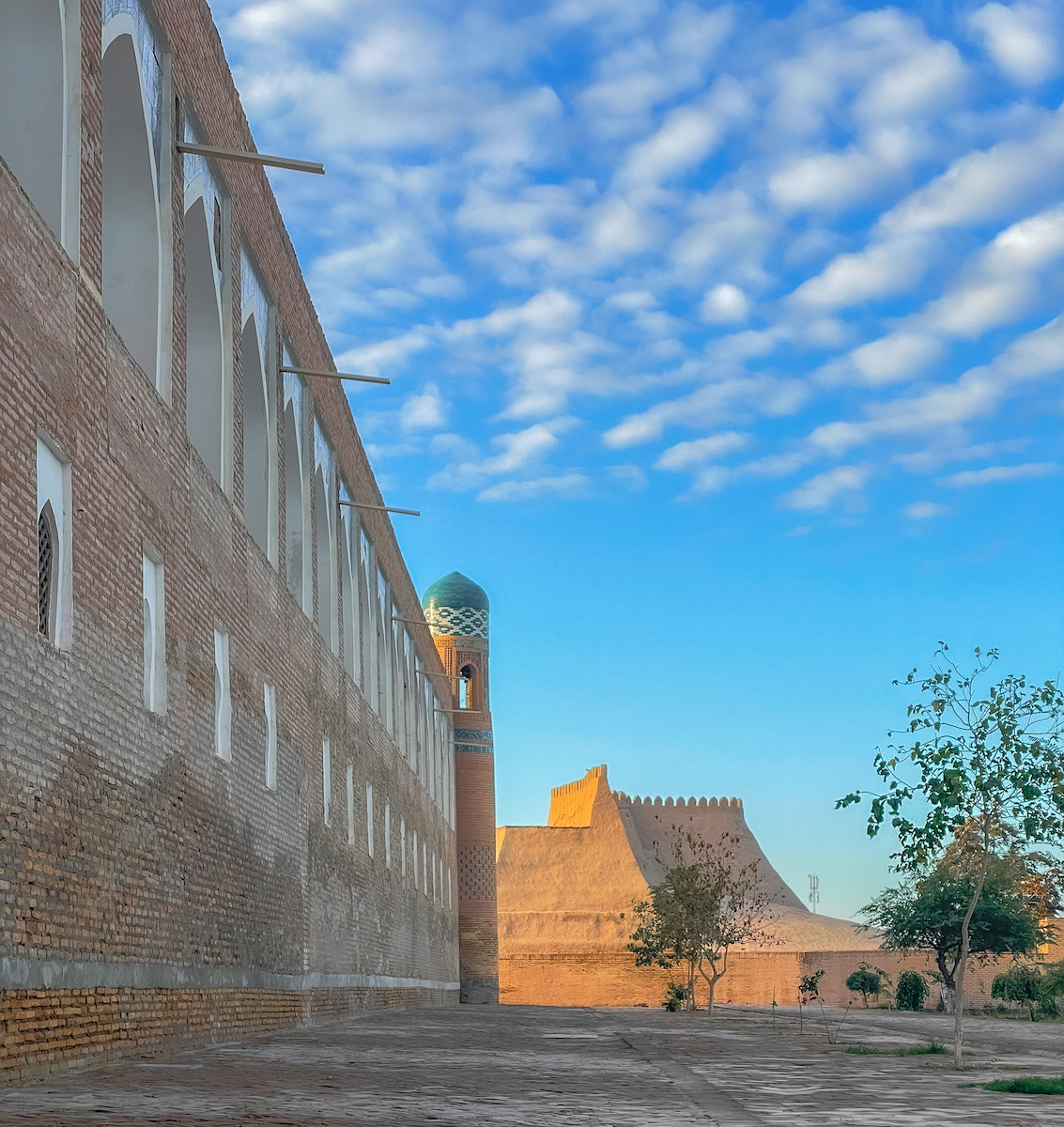 Khiva était un comptoir commercial sur la légendaire Route de la Soie. Elle était à l’époque la dernière étape des caravaniers avant la traversée du désert du Karakoum. La vieille ville fortifiée est classée au patrimoine de l’UNESCO depuis 1990.