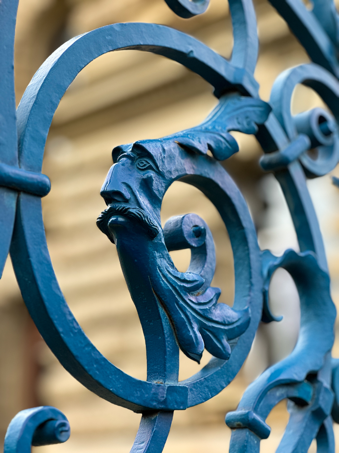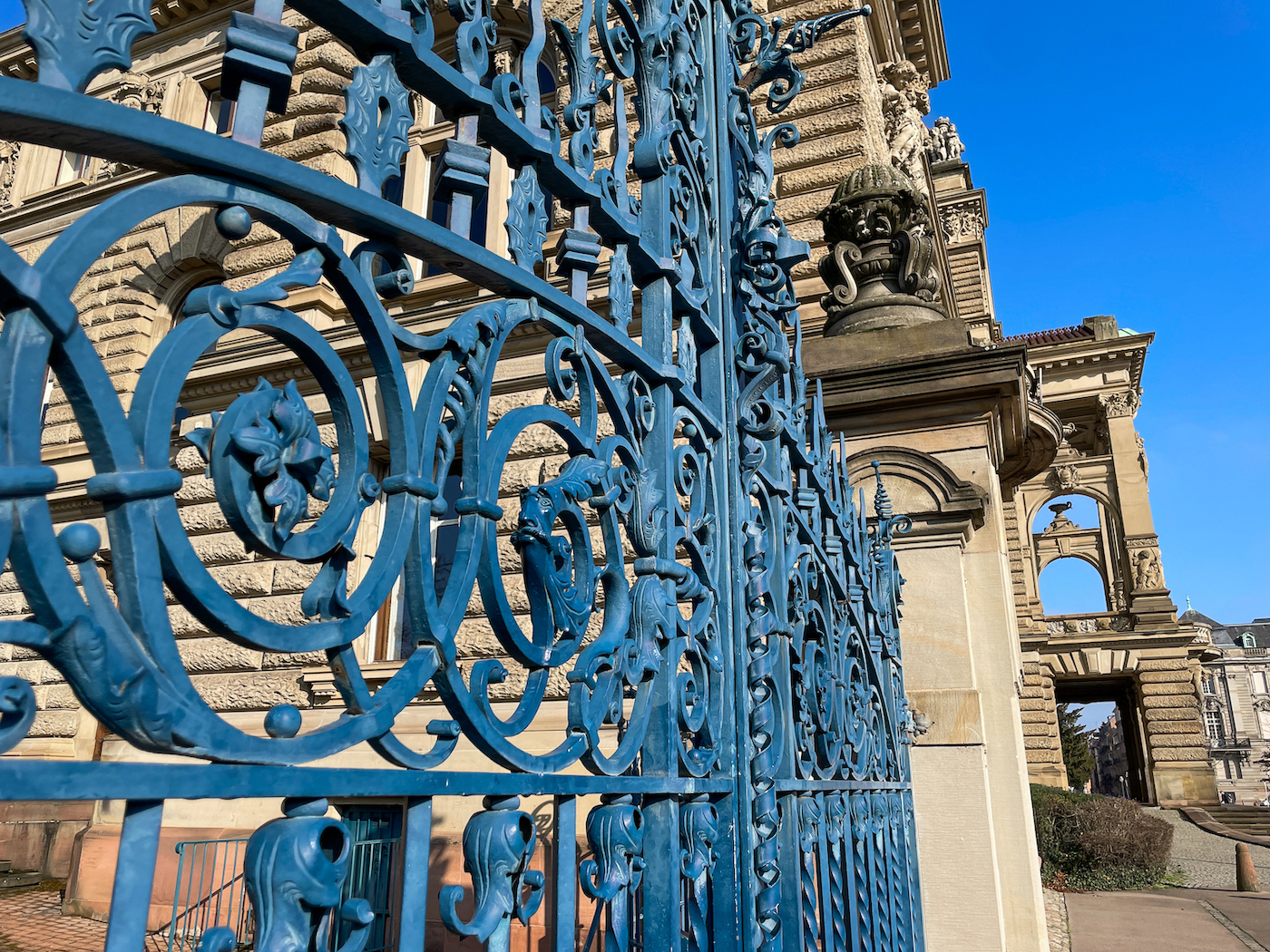La grille en fer forgé bleu de Prusse, de part et d’autre du Palais, cache un secret que même beaucoup de Strasbourgeois ignorent. On pourrait passer des dizaines de fois devant cette grille, sans voir ce détail.