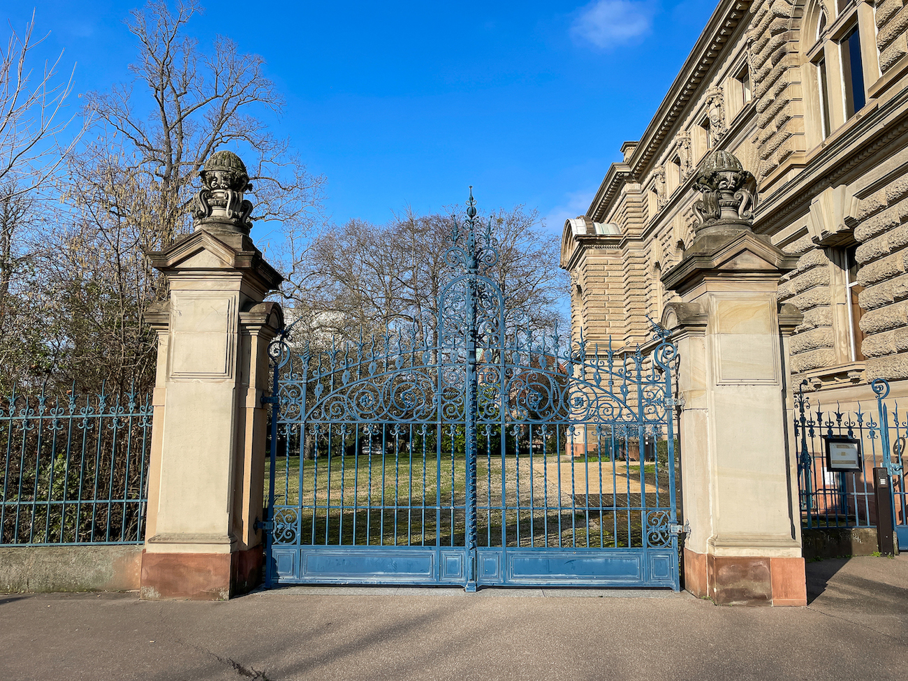 Lors de votre visite de la Neustadt, quartier classé au Patrimoine mondial de l’UNESCO, essayez de repérer le visage de Guillaume II sur la grille qui entoure le Palais du Rhin.
