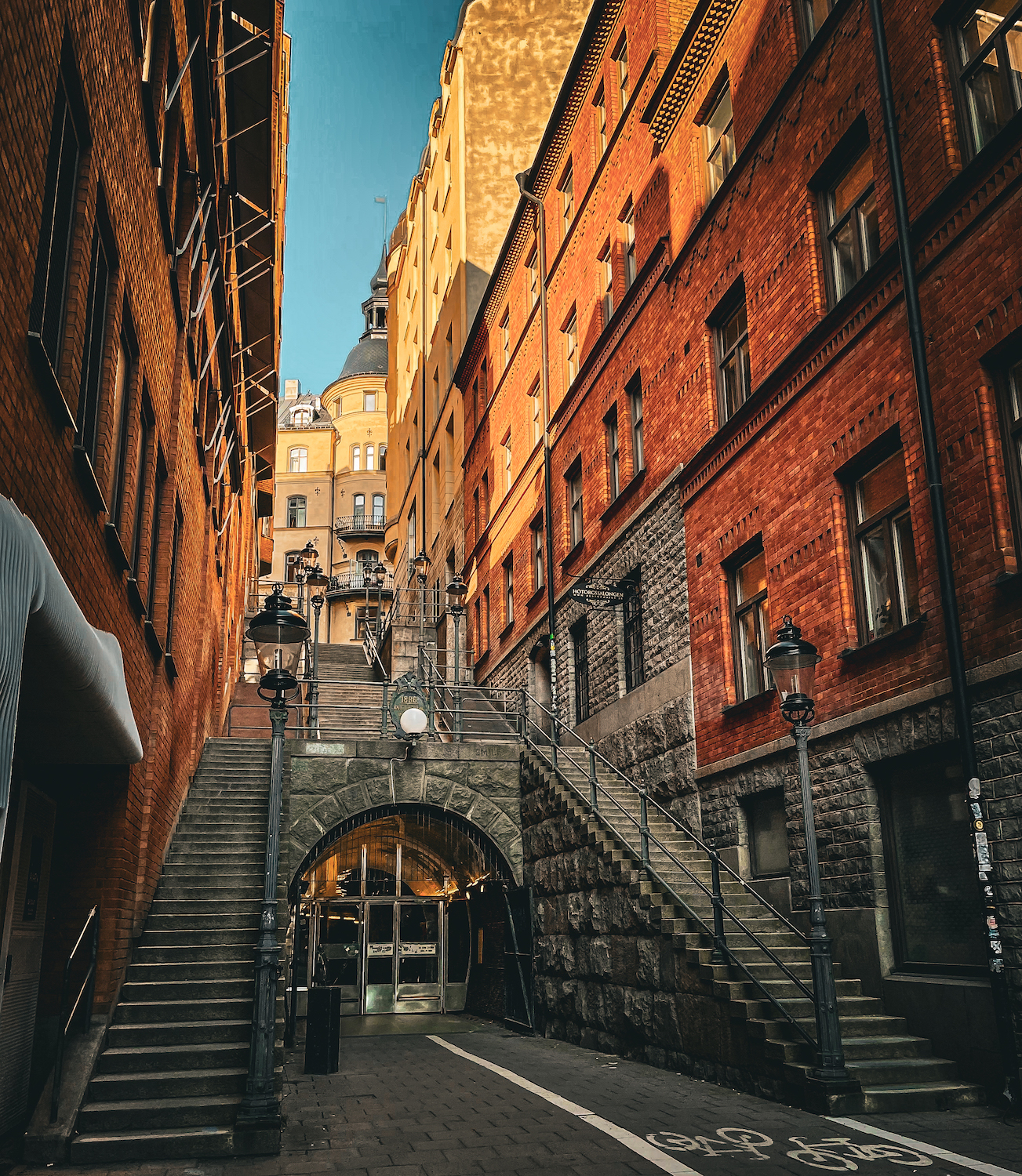 Bordant la falaise au nord de Södermalm, cette rue offre une perspective grandiose sur la péninsule de Djurgården, Skeppsholmen et Gamla Stan.
