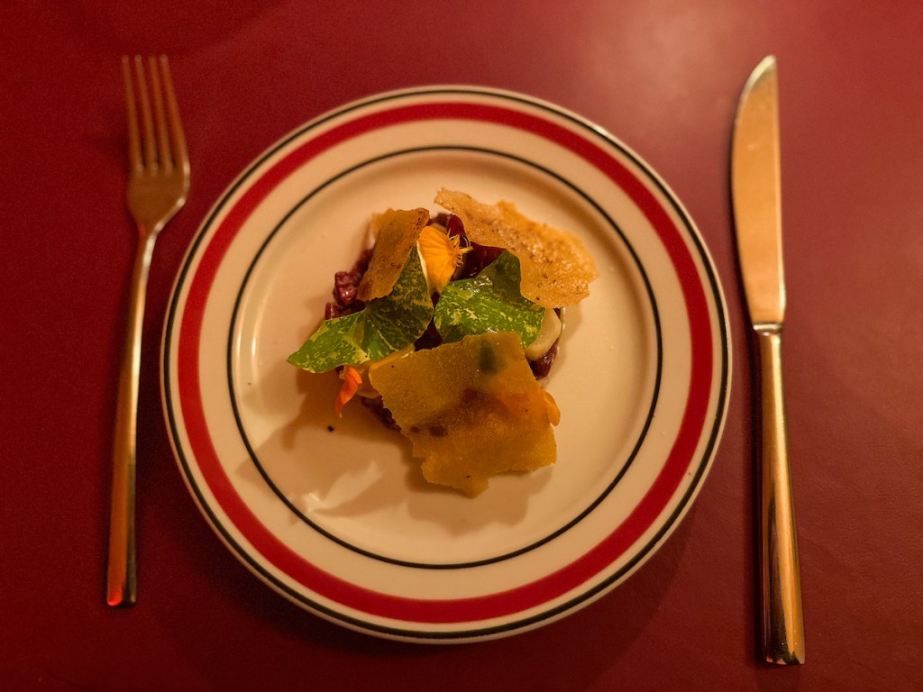 Le nom original de ce petit restaurant bistronomique pose les bases d’une expérience inédite. Les thèmes à la carte évoluent régulièrement, au fil des saisons et de l’inspiration du chef. Le menu nous guide à travers un parcours culinaire en 4 temps. Les plats sont créatifs, bien composés et mettent à l’honneur les produits naturels locaux. L’équipe en salle est bienveillante et sympathique. La réservation est indispensable.