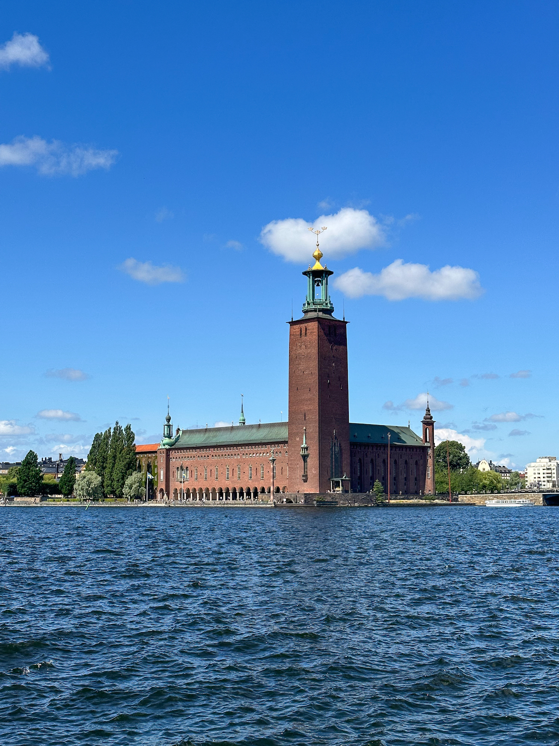 La silhouette de la tour de l’Hôtel de Ville, avec sa flèche ornée de Trois Couronnes, est l’une des plus connues de Stockholm.