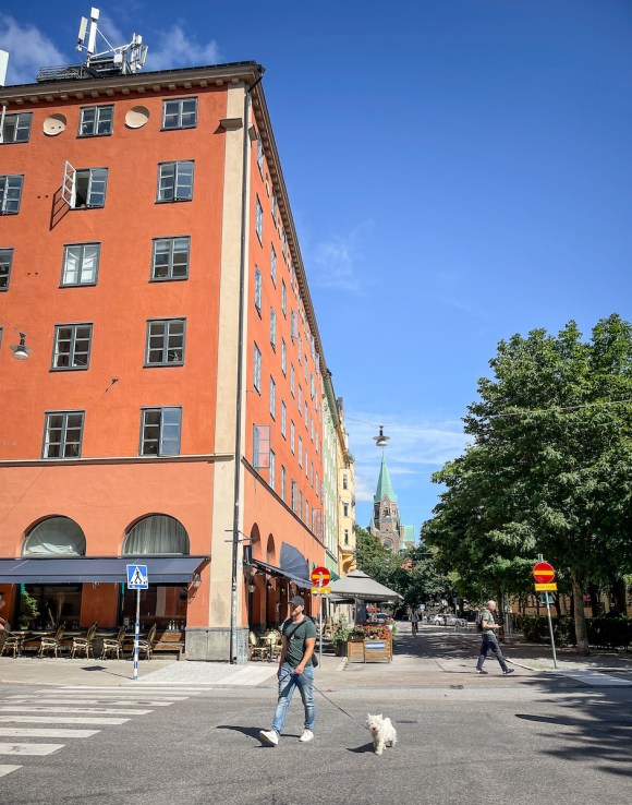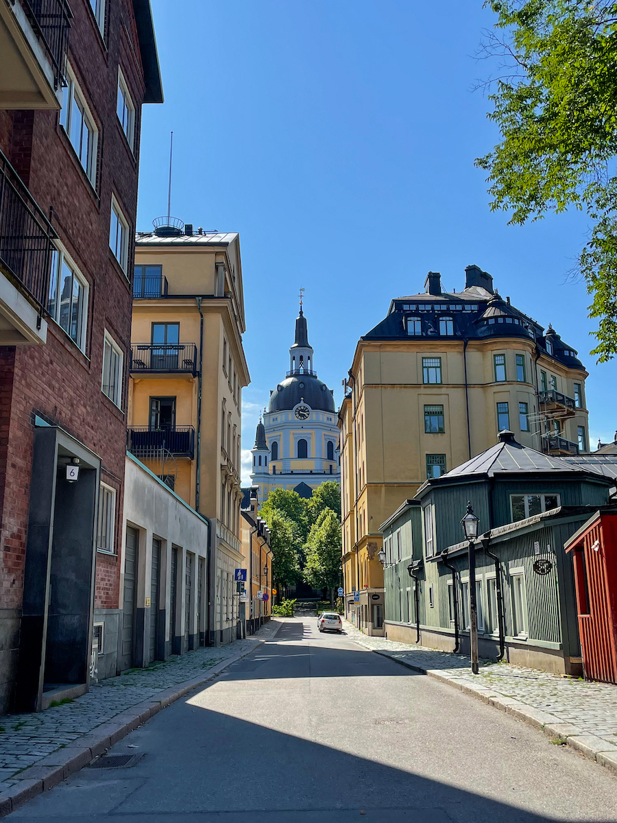 Elle est bordée de maisons ouvrières en bois colorées du XVIIIe siècle, pour la plupart construites après le premier incendie qui a détruit l’église et les maisons avoisinantes en 1723. Ces maisons sont aujourd’hui classées et font partie des plus anciens bâtiments en bois de Stockholm.