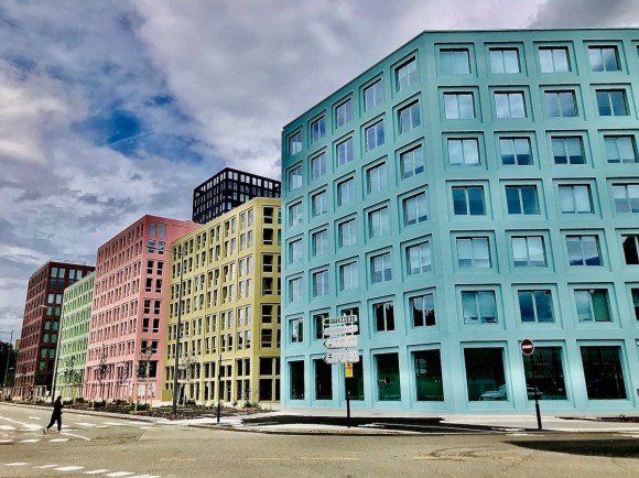 • les immeubles colorés de NoLiStra (pour NOuveau LIeu de STRAsbourg), route de Vienne : cet ensemble immobilier, composé de résidences, d’un immeuble de bureaux, de commerces et d’un hôtel, est un trait d’union entre le centre-ville et le quartier du Neudorf.