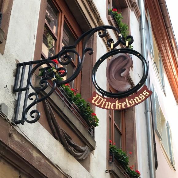 • Les anciennes enseignes de magasins : rue des Orfèvres, place de la Cathédrale, rue du Chaudron.