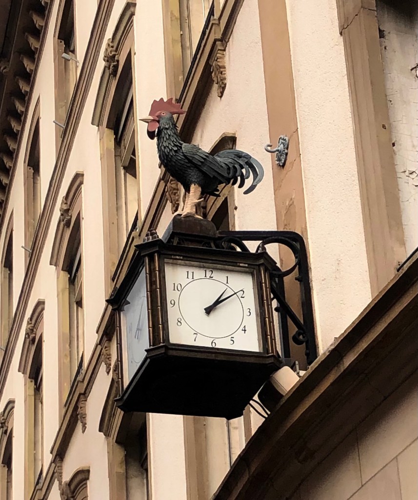 • Le coq des DNA chante à midi (17 rue de la Nuée Bleue) : chaque jour à midi, le coq perché au-dessus de l’horloge du siège des DNA (le quotidien de Strasbourg) chante trois fois. Une poule sur son nid, située juste en face, lui répond et pond des œufs en or. Comme un petit air de ferme en plein centre-ville !